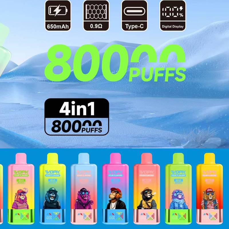 The VOPK 80000 Puffs is a high-quality, rechargeable disposable vape offering 80000 puffs, 4-in-1 adjustable flavors, a smooth 2% and 5% nicotine strength, and a robust 650mAh battery, designed for an extended and customizable vaping experience.